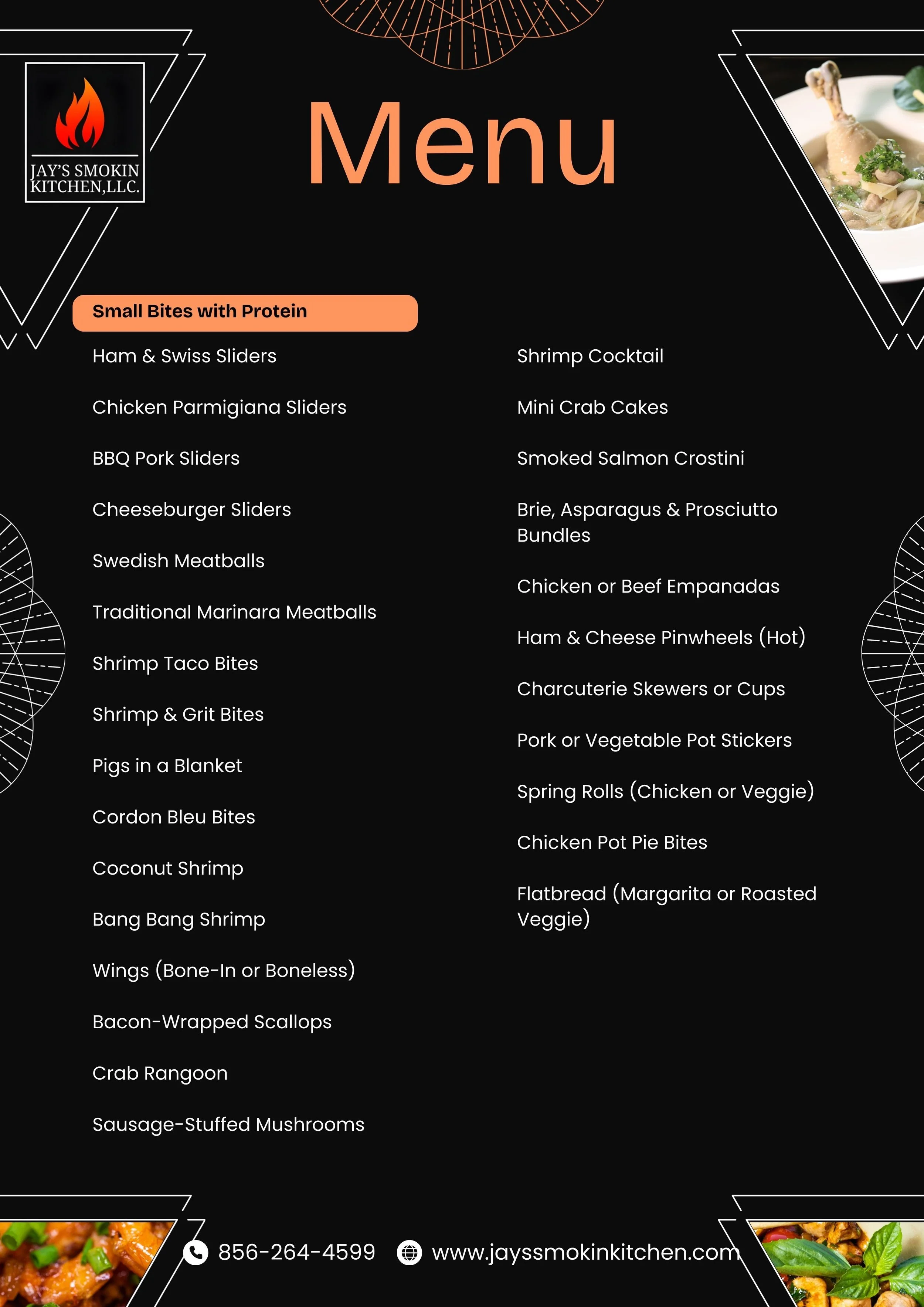 Below is a sampling of what we offer. We’re happy to mix, match, and customize based on your guest count, dietary needs, and budget.